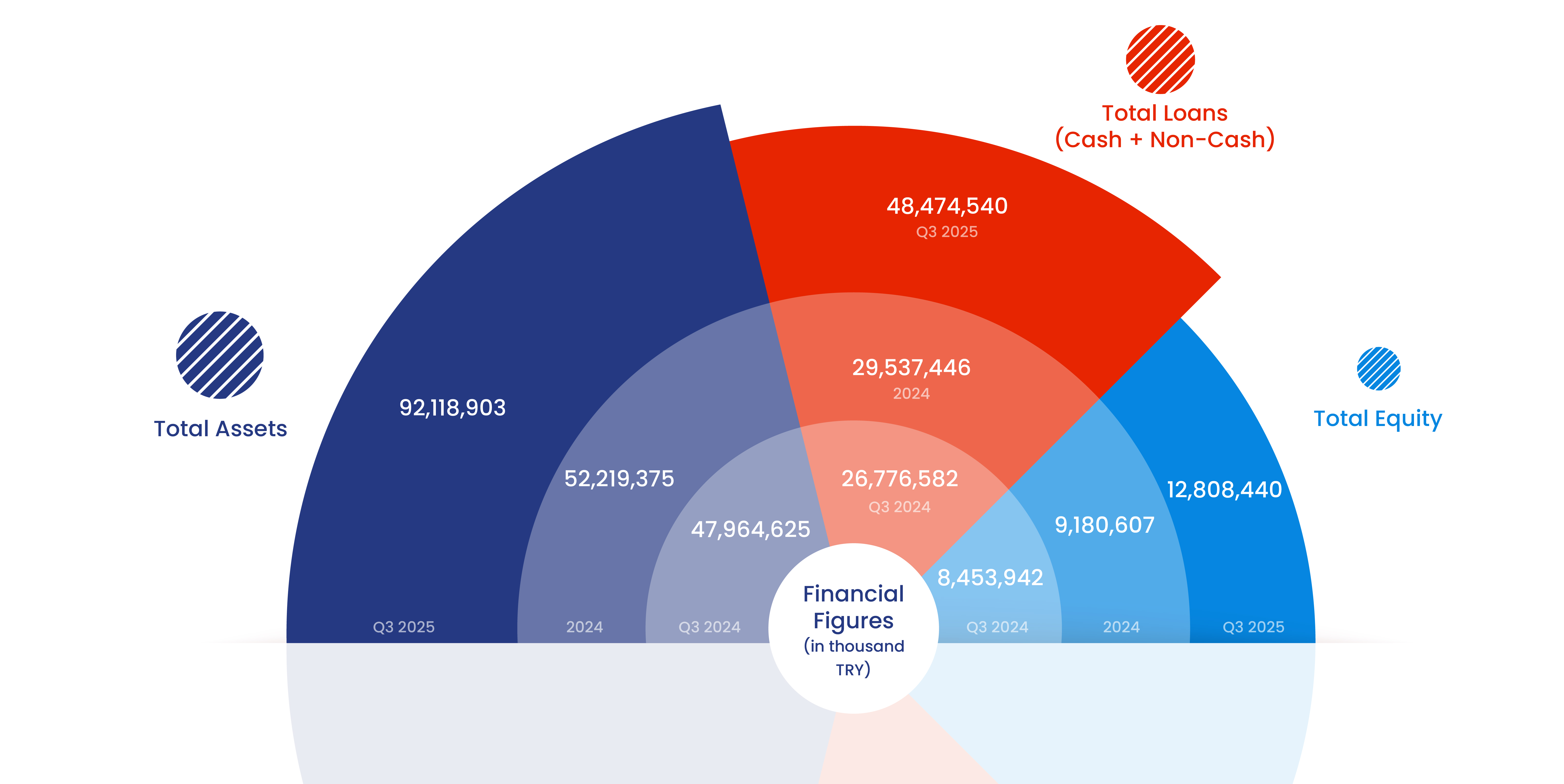 Our Total Assets reached TRY 92 billion and Our Equity approached to TRY 13 billion. Compared to QoQ, we increased our Total Assets by 92% and our Total Equity by 52%.
